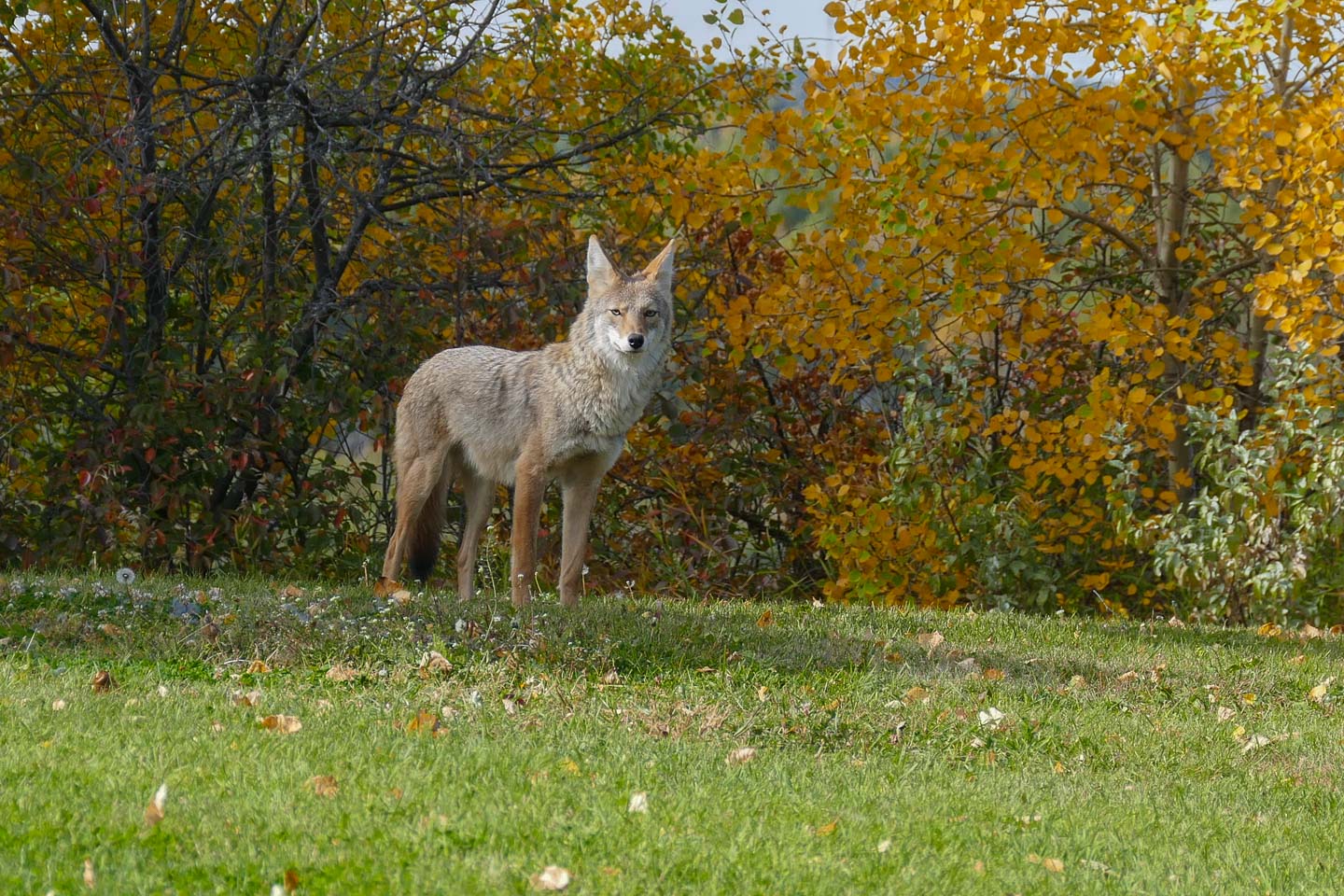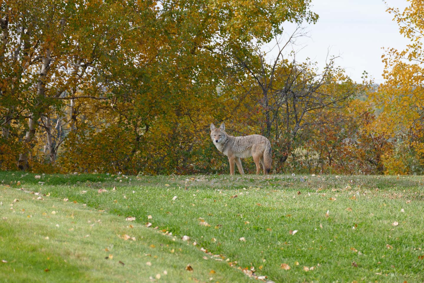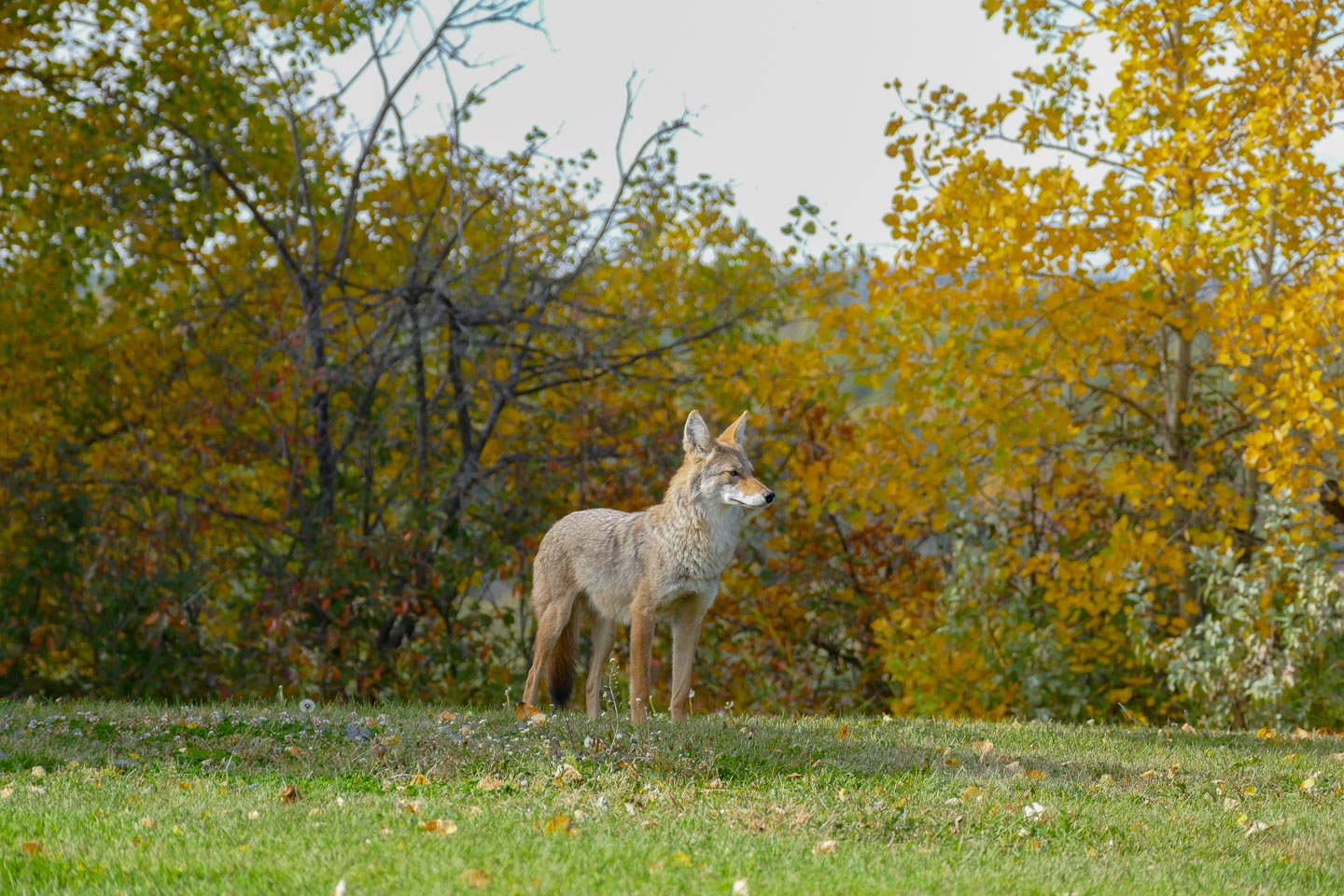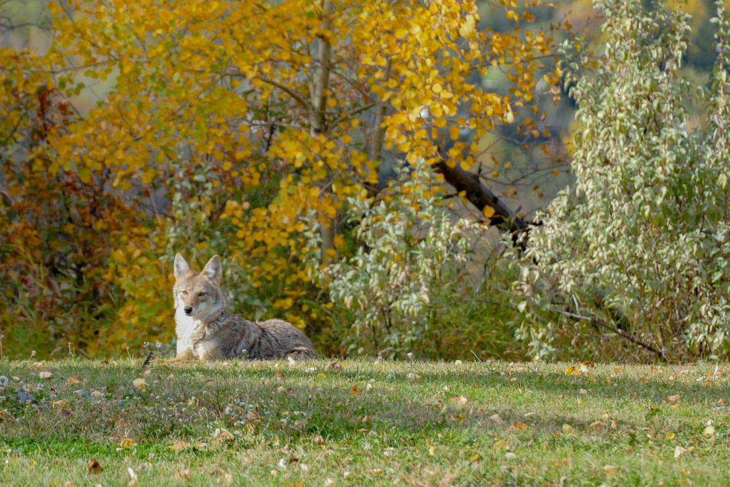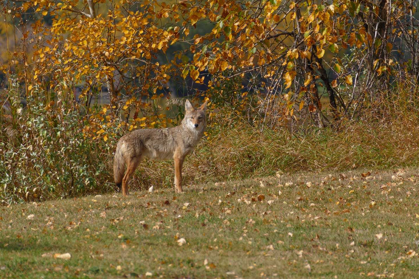 I was treated to many poses, and even a brief sit-down, but I guess I overstayed my welcome and in a few minutes the show was over and the coyote slipped into the autumn background.